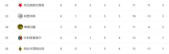 取勝之后,阿賈克斯終于結(jié)束了開局5連敗戰(zhàn)績,拿下首場勝利積3分,積分榜排名升至第33位,倒數(shù)第一的名次給了阿拉木圖凱拉特。